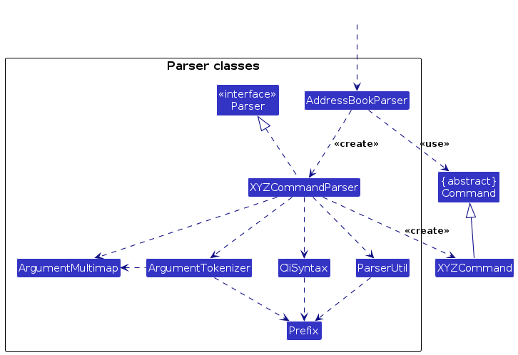) which uses the other classes shown above to parse the user command and create a XYZCommand
